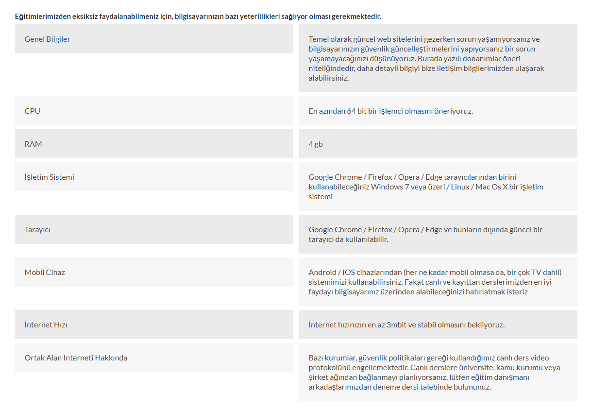 Minimum Sistem Gereksinimleri