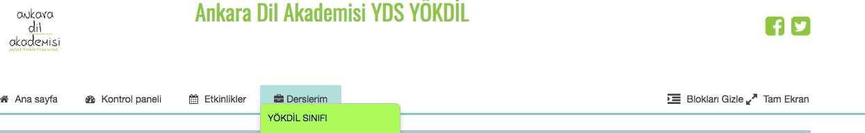 Ankara Dil Akademisi Kayıtlı YDS hazırlık derslerine giriş yapabilmek için, eğitim portalımıza (egitim.ankaradil.com), www.ankaradil.com adresine kayıt olduğunuz eposta adresi ve şifre ile giriş yapmamız gerekiyor.
