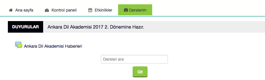 Giriş yapmak istediğiniz dersi "Dersleri Ara" kısmından arayabilir ya da aşağıdaki listeden seçebilirsiniz.
