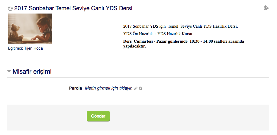 Mailin yanıtında size girmek istediğiniz derse ait misafir şifresi gönderilecektir.