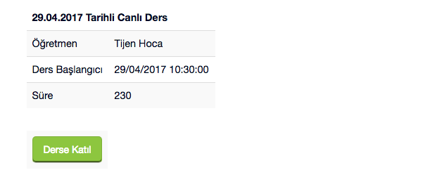 Son olarak gelen sayfada "Derse Katıl" düğmesine tıklayarak derse giriş yapın.