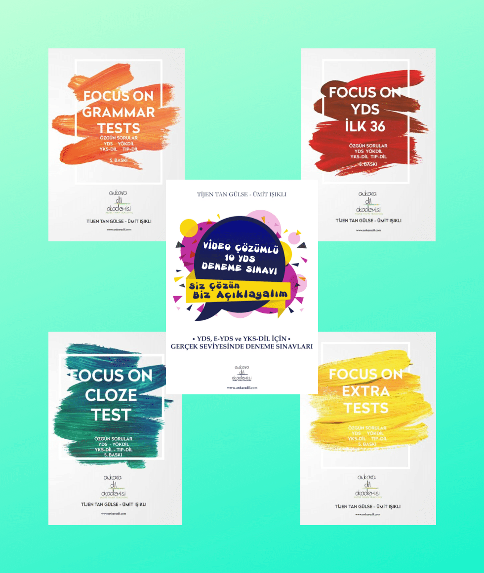Unutmayın ki ne kadar çok soruya maruz kalırsanız, o kadar çok bilgi ve tecrübeniz olacaktır. FOCUS ON YDS İLK 36 kitabımızı sizlere sunarak, yeterli sayıda soru çözmenizi sağlıyoruz.