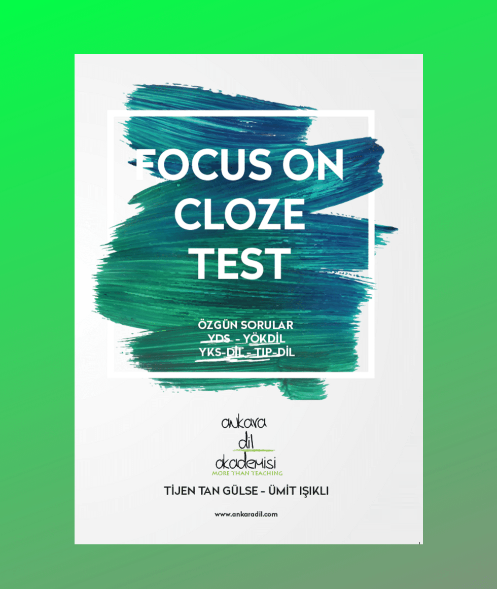 Ümit hoca ve Tijen Hoca'nın el ele verip hazırladıkları, FOCUS ON CLOZE TEST kitabı YDS için özgün sorulardan oluşan harika bir kaynaktır. Cloze Test soru türü olarak YDS, LYS-DİL ve TIP-DİL sınavlarında ağırlıklı olarak test edilmektedir.