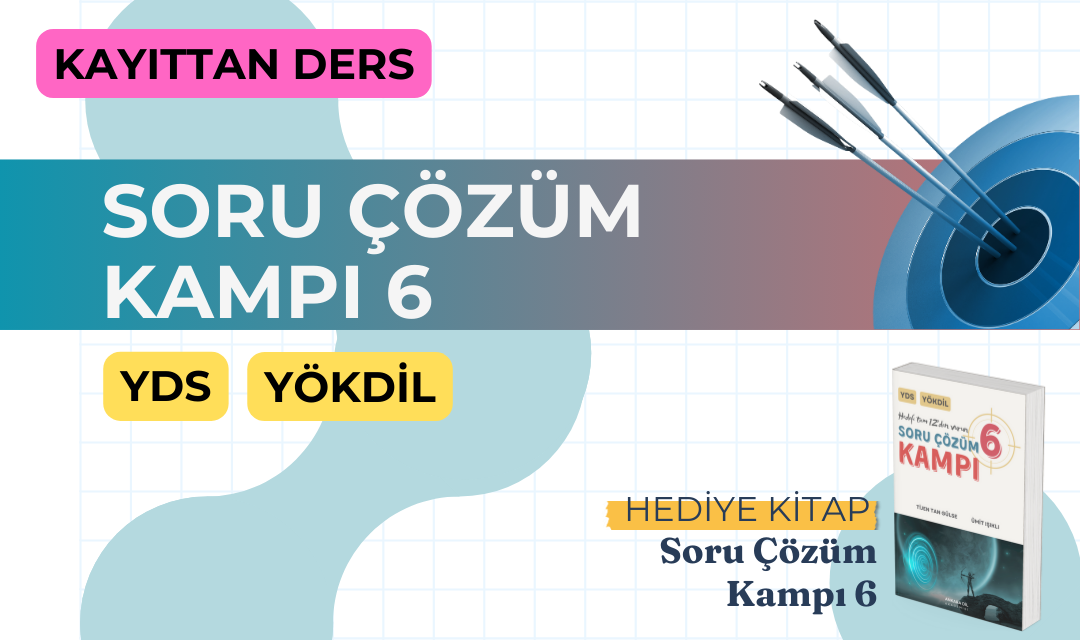 YDS'de farklı soru tiplerinde sorunlar mı yaşıyorsunuz? Her soru tipinden detaylı bir şekilde soru çözülen kamp programına katılın! YDS’de karşınıza çıkabilecek tüm soru tiplerini kapsayan soru çözüm çalışmaları kayıttan derslerde Tijen Hoca ve Ümit Hoca tarafından yapılmıştır. Yaklaşık olarak 50 ders saati süren bu eğitimde 500'den fazla soru çözülmüştür.